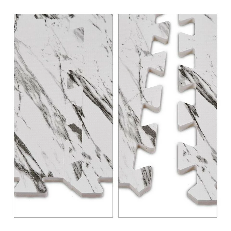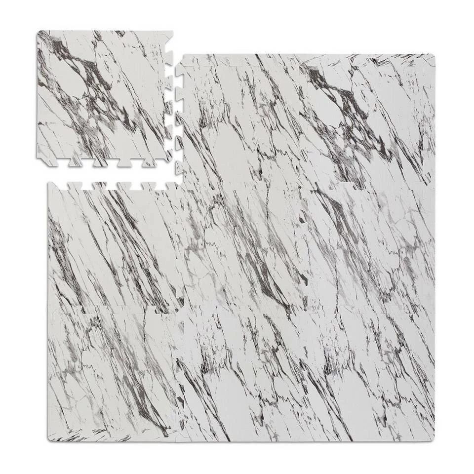 - Basics: Schaumstoffmatten aus EVA (BPA-frei) – Fläche: ca. 0,85 m² – In weiß-grauer Marmoroptik