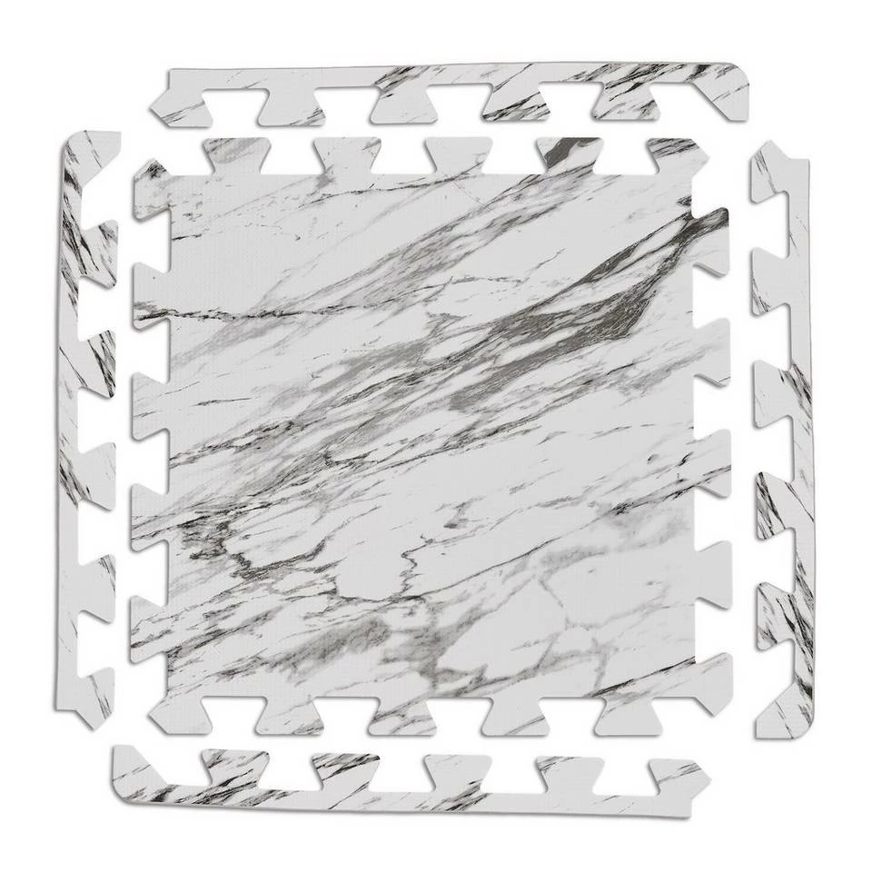 - Basics: Schaumstoffmatten aus EVA (BPA-frei) – Fläche: ca. 0,85 m² – Dekorative, weiß-graue Marmoroptik