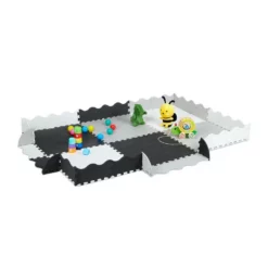 Große Puzzlematte für sicheres Spielen Mit der weichen Puzzlematte aus Schaumstoff haben Ihre Kinder eine bequeme, isolierende Unterlage zum Spielen und Toben. Die 30-teilige Kindermatte ist schnell aufgebaut, hält zuverlässig Bodenkälte fern und dämpft kleine Stürze. Dank der aufstellbaren Umrandung wird aus der Spielmatte für Kleinkinder schnell eine Krabbelmatte für Babys. Die umrandete Babymatte hält kleine Abenteurer sowie das Spielzeug-Chaos in Grenzen. Etwaige Verschmutzungen sind dank der wasserabweisenden Matten leicht abwischbar.