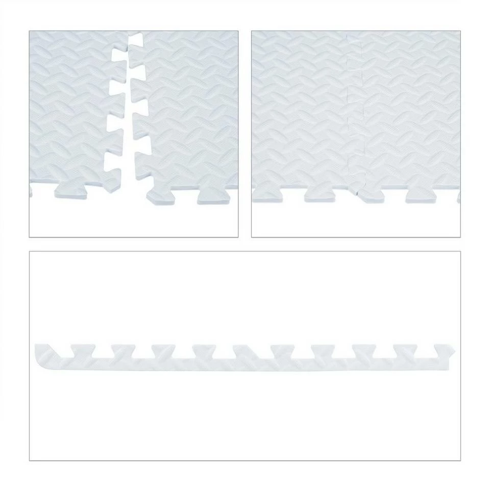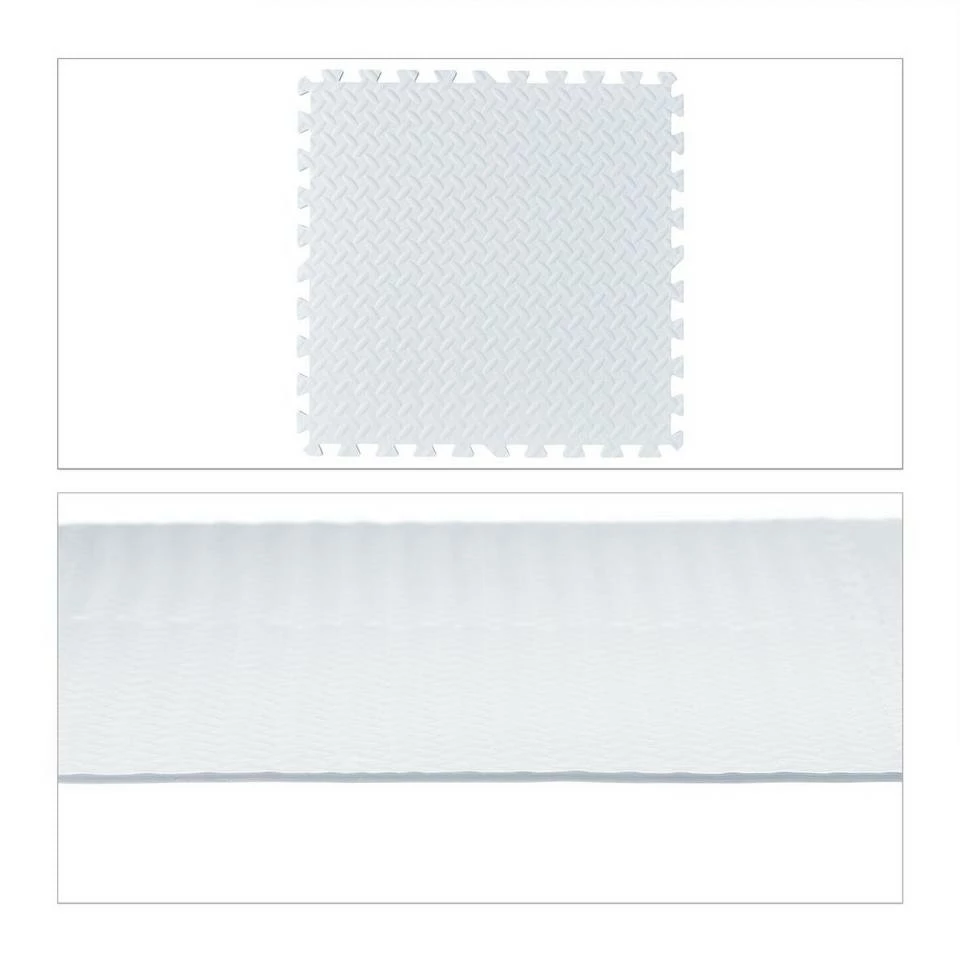 Weiße Puzzlematte für Fitnessgeräte und mehr Auch in der Mietwohnung können Sie Ihr Fitnessworkout absolvieren ohne die Nachbarn zu verärgern. Mit dieser stoßdämpfenden Sportunterlage im 8er Set werden die Geräusche beim Sport minimiert und zudem Ihre Gelenke geschont. Ihr Fußboden wird dank der Gymnastikböden aus Schaumstoff ebenso vor unschönen Kratzern bewahrt. Nutzen Sie die Unterlegmatten daher ebenso als Schutzmatten unter Fitnessgeräten oder der Waschmaschine sowie als Spielmatte im Kinderzimmer. Die einzelnen Teile der weißen Puzzlematte können dazu beliebig zusammengesetzt und erweitert werden.