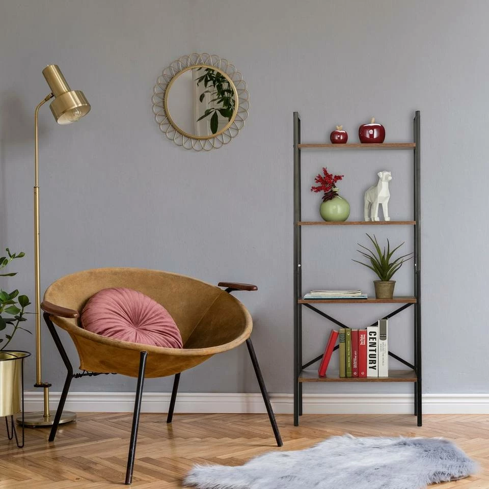 - Aufbewahrung: Auch Ordner, Bilder und Pflanzen finden auf den 4 offenen Ebenen im Leiterregal Platz