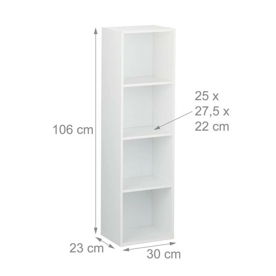 - Basics: Maße gesamt H x B x T: ca. 106 x 30 x 23 cm – Maße je Fach H x B x T: ca. 25 x 27,5 x 22 cm