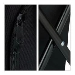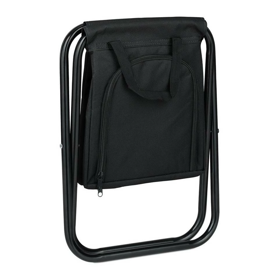 - Design: Kompakter Campinghocker mit robustem Gestell aus Eisen und Polyesterbezug ganz in Schwarz