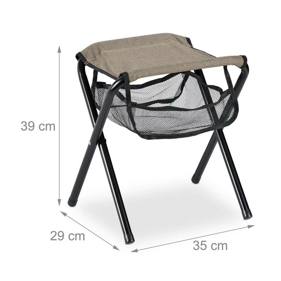 - Mit Tasche: Falthocker mit Netz unter der Sitzfläche für Handy uvm. – Fach HxBxT: ca. 8 x 25 x 25 cm