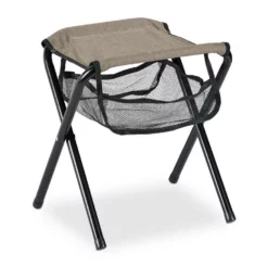 Klappbarer Campinghocker mit Netztasche Ob beim Campen oder beim Angelausflug, der handliche Klapphocker ist die ideale Sitzgelegenheit für alle Outdoor-Aktivitäten. Das robuste Polyestergewebe in Beige ist reißfest und belastbar. Das leichte Metallgestell ist mit einem Handgriff gefaltet und der Angelhocker platzsparend verstaut. Dank der Tasche unter dem Sitz sind auch die wichtigsten Utensilien stets griffbereit. Nutzen Sie den Falthocker auch als Fußhocker zum Beine hochlegen nach einer langen Wanderung oder als Gartenhocker für bodennahe Arbeiten.