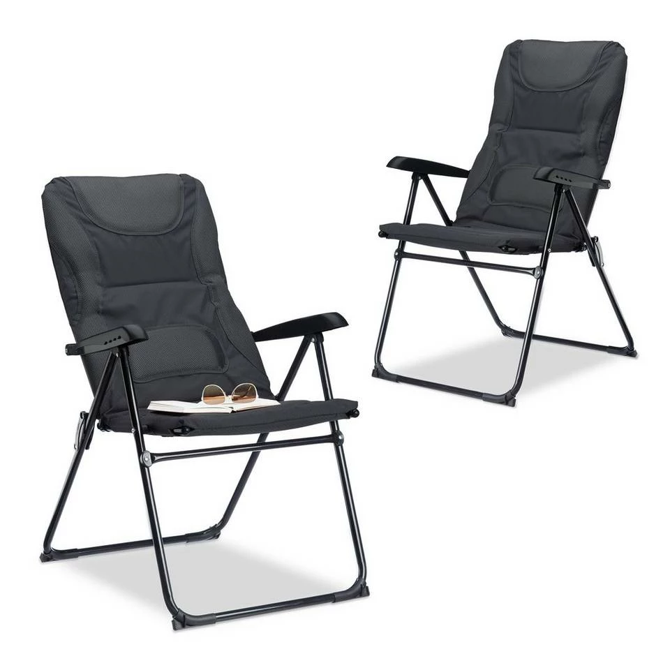 - Klappbar: Die Klappstühle sind schnell platzsparend verstaut – Die Lehne ist 2 Stufen nach hinten verstellbar – Einfach die beiden Armlehnen nach oben ziehen