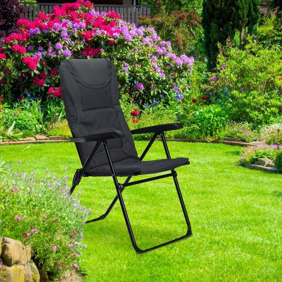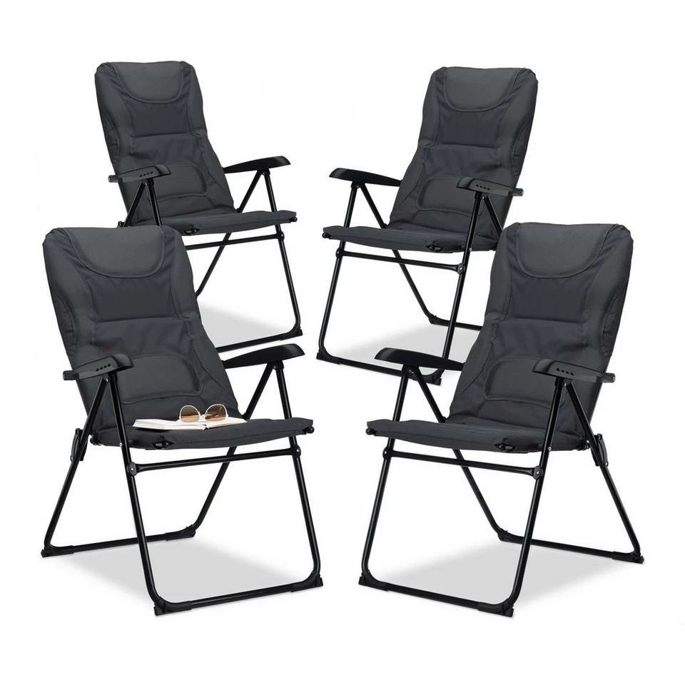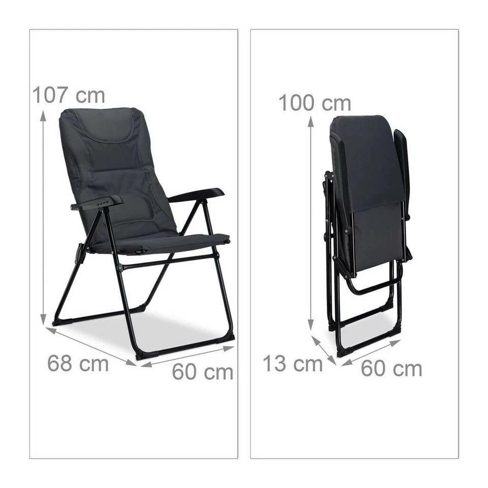 - Klappbar: Die Klappstühle sind schnell platzsparend verstaut – Die Lehne ist 2 Stufen nach hinten verstellbar – Einfach die beiden Armlehnen nach oben ziehen
