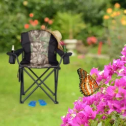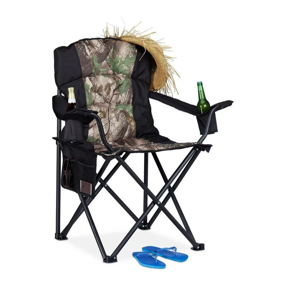 - Praktisch: Mit 2 Getränkehaltern u. Seitentasche bietet der Faltstuhl ausreichend Stauraum – Bis 113 kg