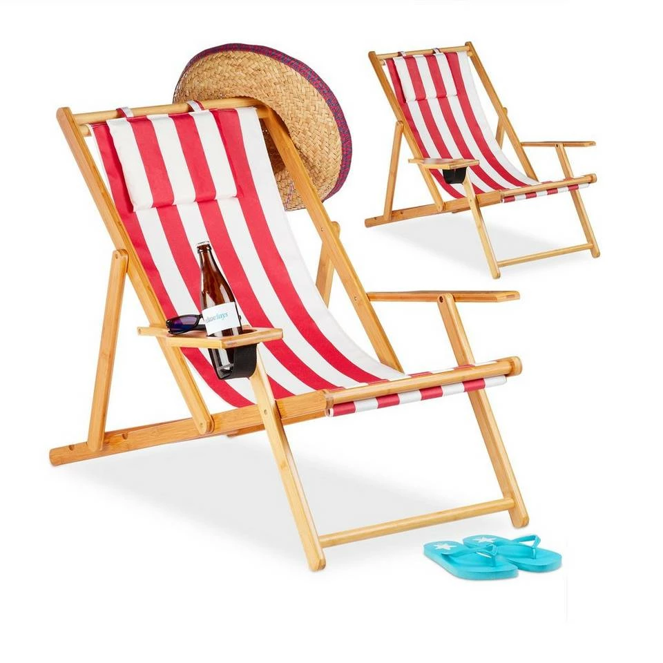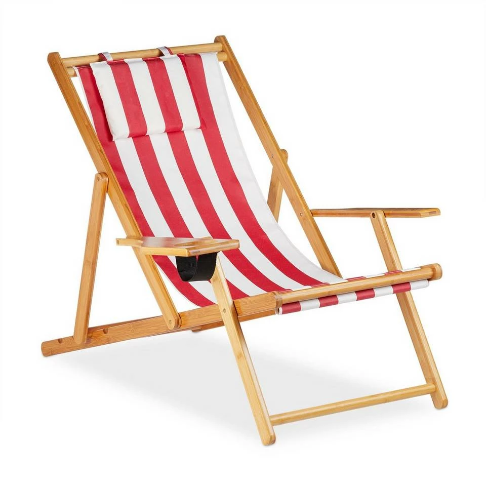 - Entspannt: Machen Sie es sich im Klappliegestuhl mit Armlehnen bequem – In Rot-Weiß gestreift