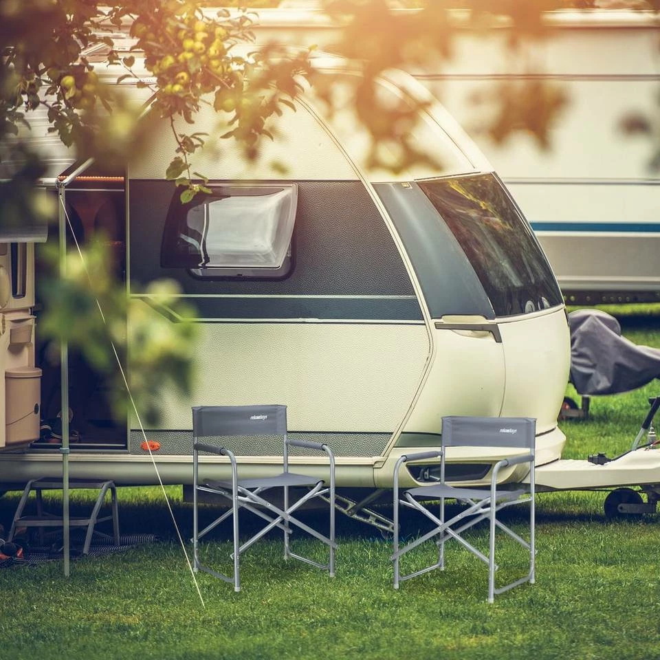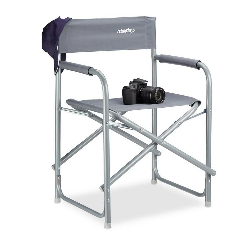 Regiestuhl faltbar outdoor Wenn Sie auch draußen die Regie übernehmen wollen, ist dieser Regiestuhl der ideale Komplize. Zusammengeklappt ist der Campingstuhl sehr leicht, sodass Sie ihn ohne Probleme transportieren und platzsparend verstauen können. Um ihn zu nutzen, müssen Sie nur die Stangen der Sitzfläche auseinanderziehen. Der robuste Klappstuhl aus Stahl ist wetterfest und macht sich vielerorts gut – ob Sie nun im Garten feiern, einen Camping-Ausflug machen oder beim nächsten Outdoor-Festival kurz verschnaufen möchten. Die halbe Rückenlehne ermöglicht gerade im Sommer ein angenehm luftiges Sitzvergnügen. Auch die gepolsterten Armlehnen machen es Ihnen leicht, sich wohlzufühlen.