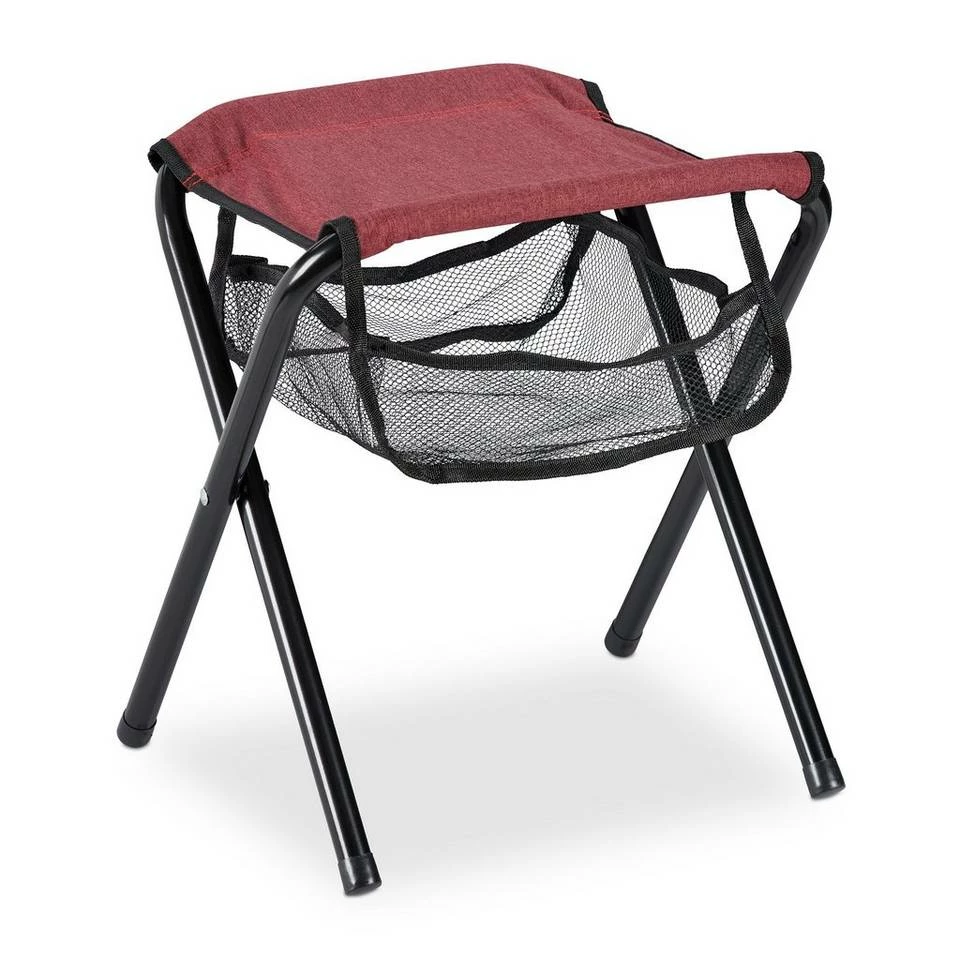 Roter Campinghocker zum Klappen Wer gern campt, weiß die kleinen Annehmlichkeiten, wie den robusten Klapphocker zu schätzen. Die praktische Sitzgelegenheit ist mit einem Handgriff aufgeklappt und erleichtert so zum Beispiel das Kochen über dem Campingbrenner. Das rot melierte Polyestergewebe ist reißfest und ideal für die Nutzung im Freien. Zusammen mit dem leichten und doch stabilen Metallgestell trägt der Angelhocker bis zu 120 kg. Eine Netztasche unter dem Sitz sorgt für zusätzlichen Stauraum. Der Falthocker ist vielseitig einsetzbar, ob unterwegs oder im eigenen Garten.