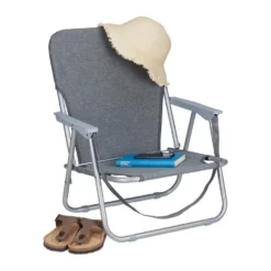 Niedriger Faltstuhl für schöne Tage am Strand Bei Ihrem nächsten Ausflug an den Strand sollte dieser Campingsitz im 2er Set auf keinen Fall fehlen. Der niedrige Campingstuhl muss nur aufgeklappt werden und bietet schon hohen Sitzkomfort. Auf dem Strandhocker mit Armlehnen und hoher Rückenlehne lässt es sich besonders gut Relaxen. Ob am Meer, beim Campingausflug oder dem kommenden Festivalbesuch, der Strandstuhl ist zusammengeklappt ein platzsparendes Outdoorequipment, dass mit dem Tragegriff unkompliziert transportiert werden kann.