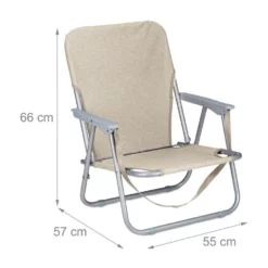 - Basics: Strandstuhl HBT ca. 66 x 55 x 57 cm – Ca. 24,5 cm Sitzhöhe – Sitzfläche BxT: ca. 35 x 35 cm