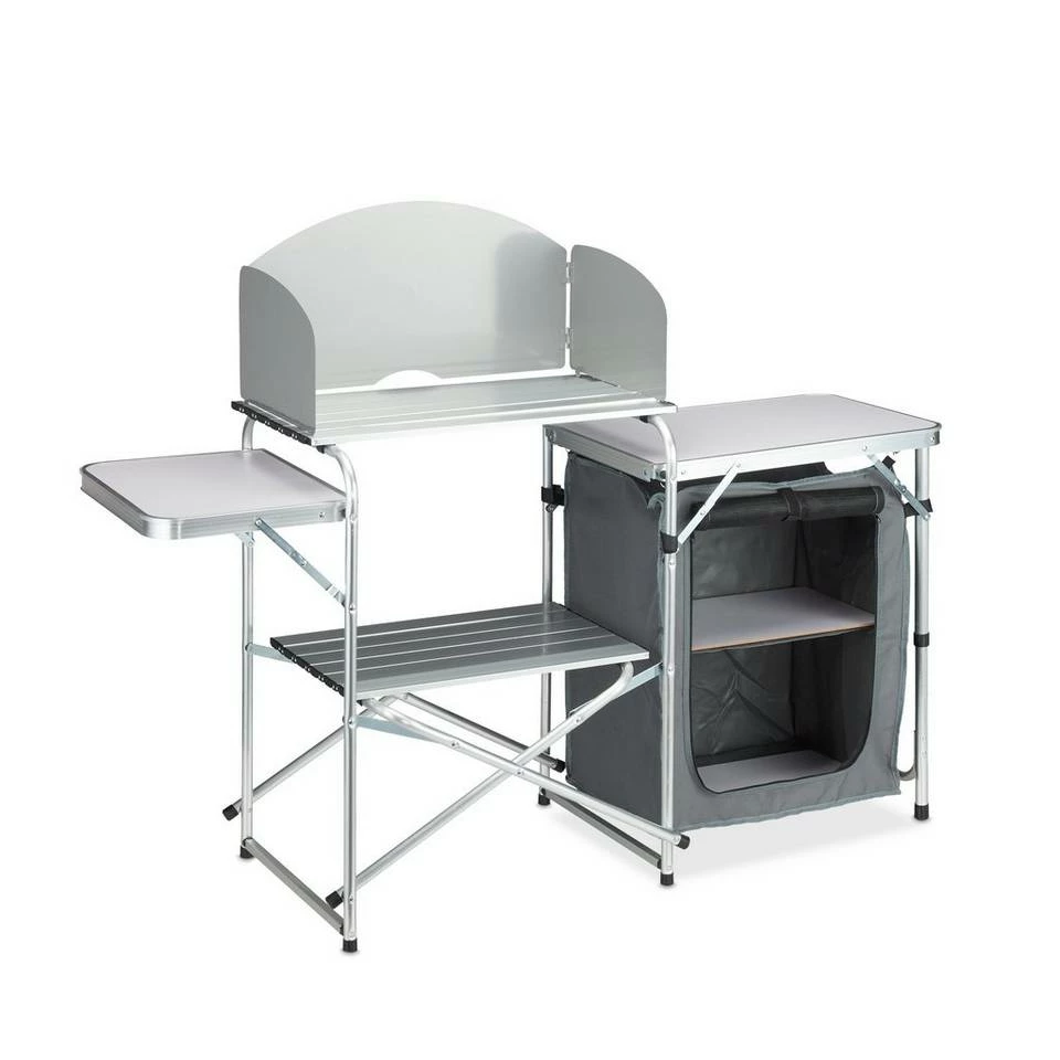 - Komplett: Campingküche mit Arbeitsplatten, Windschutz und Schrank – Beim Camping Kochen wie Zuhause