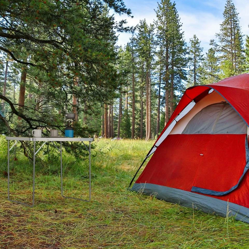 - Kompakt: Am rechteckigen Alu-Campingtisch finden bis zu 4 Personen Platz – Ideal für Familienausflüge