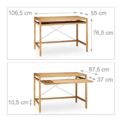 - Massiv: Der Computer-Schreibtisch ist aus robusten, nachhaltigen Bambus – Der kleine PC-Tisch passt mit den Maßen von ca. 76,5 x 106,5 x 55,5 cm in jeden Raum