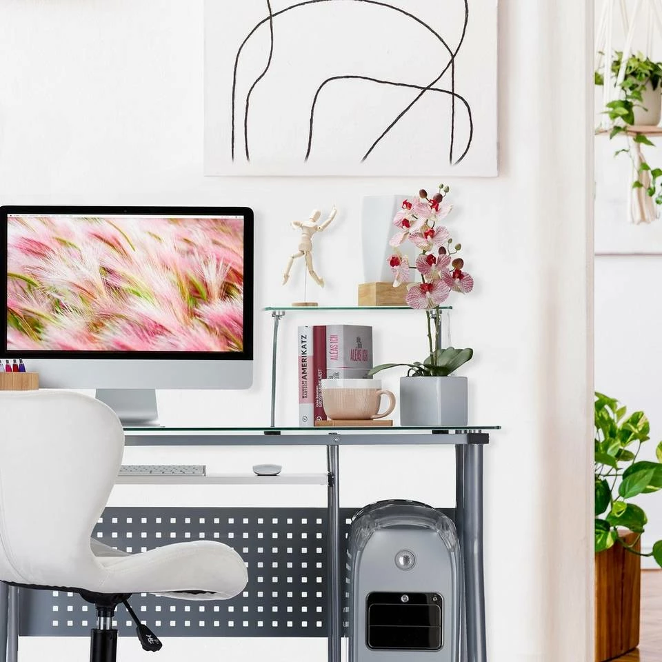 - Smart: Der Bürotisch besitzt eine bewegliche Ablage – Optimale Stellfläche für Pflanzen und Dekoration