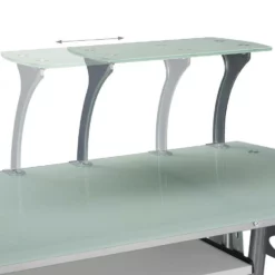 Moderner Glas-Schreibtisch mit Tastaturablage Mit dem praktischen wie dekorativen Bürotisch macht Arbeiten gleich viel mehr Spaß. Auf dem modernen PC Tisch bringen Sie platzsparend alle Arbeitsgeräte unter. Für die Tastatur gibt es eine ausziehbare Schublade. Somit bleibt die große Arbeitsfläche aus gehärtetem Glas stets frei für weitere Arbeitsutensilien. Den Rechner stellen Sie in das Fach, wo er sicher verstaut ist. Zudem wartet der Computerschreibtisch mit einer beweglichen Ablage für Deko auf, die nach Belieben versetzt werden kann.
