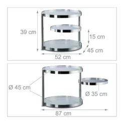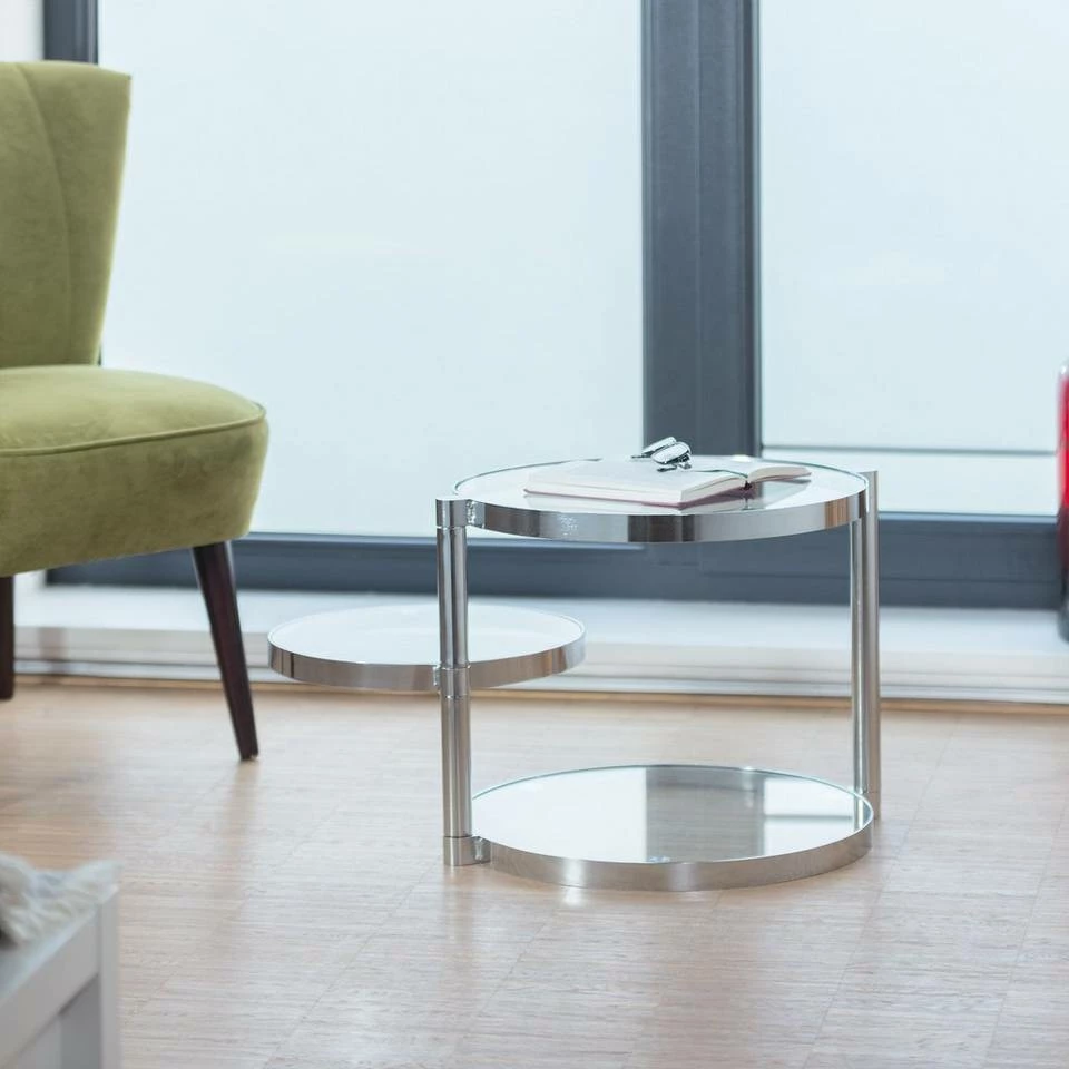 - Designtisch: Verstellbarer Couchtisch für das Wohnzimmer – Moderner Glastisch in silberner Fassung – Runde Glasplatten mit 35 cm und 45 cm Durchmesser