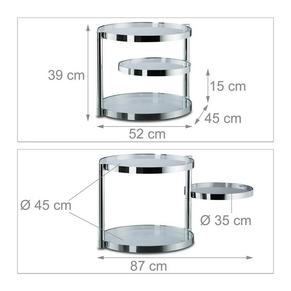 - Massiv: Robuster, silberner Stahlrahmen in Chrom Optik – Gehärtetes Glas für hohe Belastbarkeit – Saugnäpfe halten die Tischplatten sicher