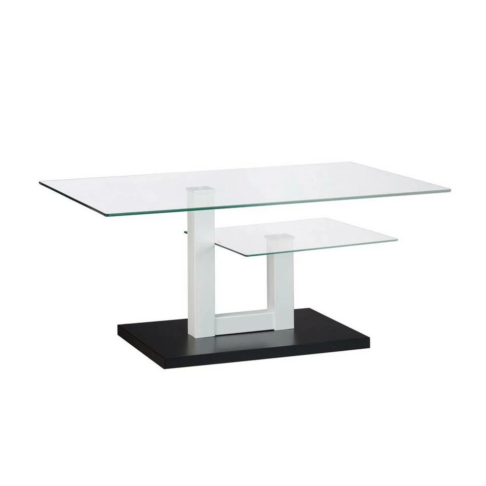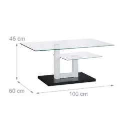 Abstelltisch aus Glas und Metall Dieser elegante Couchtisch ist die perfekte Ergänzung für Ihr Wohnzimmer. Die 2 Glasebenen bieten eine große Ablagefläche für Getränke, Blumen, Bücher und vieles mehr. Damit können Sie es sich beim Heimkino-Abend auf der Couch bequem machen und haben Snacks und die Fernbedienung immer zu Hand. Der matte Unterbau aus schwarzem und weißem Metall ist eine moderner, aber schlichter Hingucker, der für verschiedenste Einrichtungsstile geeignet ist.