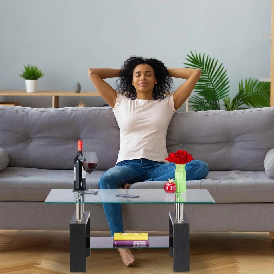- Design: Der elegante Wohnzimmertisch mit Glasplatten passt mit zeitlosem Design in jeden Wohnstil