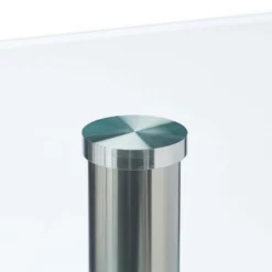 - Materialmix: Tisch Gestell in Holzoptik – 2 verschieden große Glasplatten – Silberne Stangenelemente