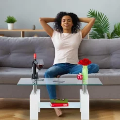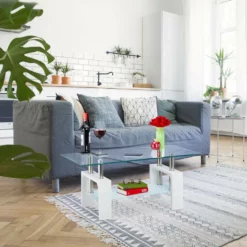 - Design: Der elegante Wohnzimmertisch mit Glasplatten passt mit zeitlosem Design in jeden Wohnstil