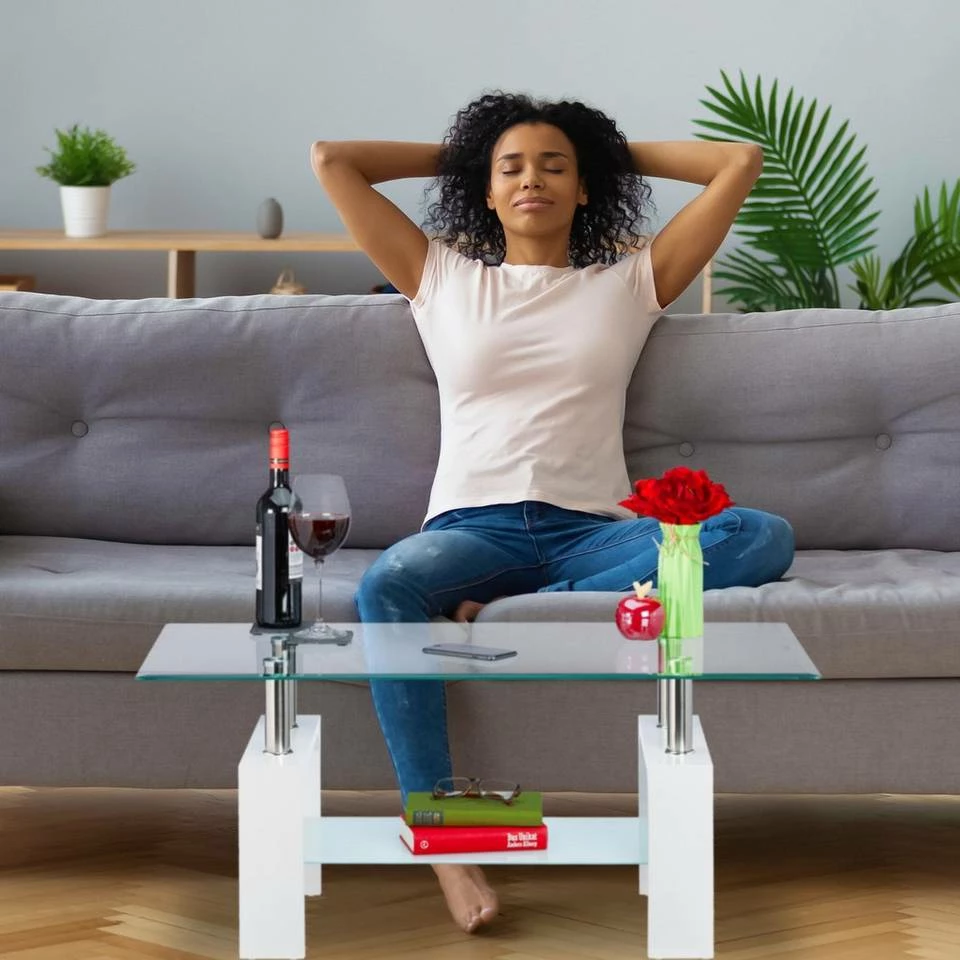 - Ablage: 2 Ebenen bieten auf dem Glastisch viel Stauraum für Deko, Blumen, Tassen, Fernbedienung uvm.