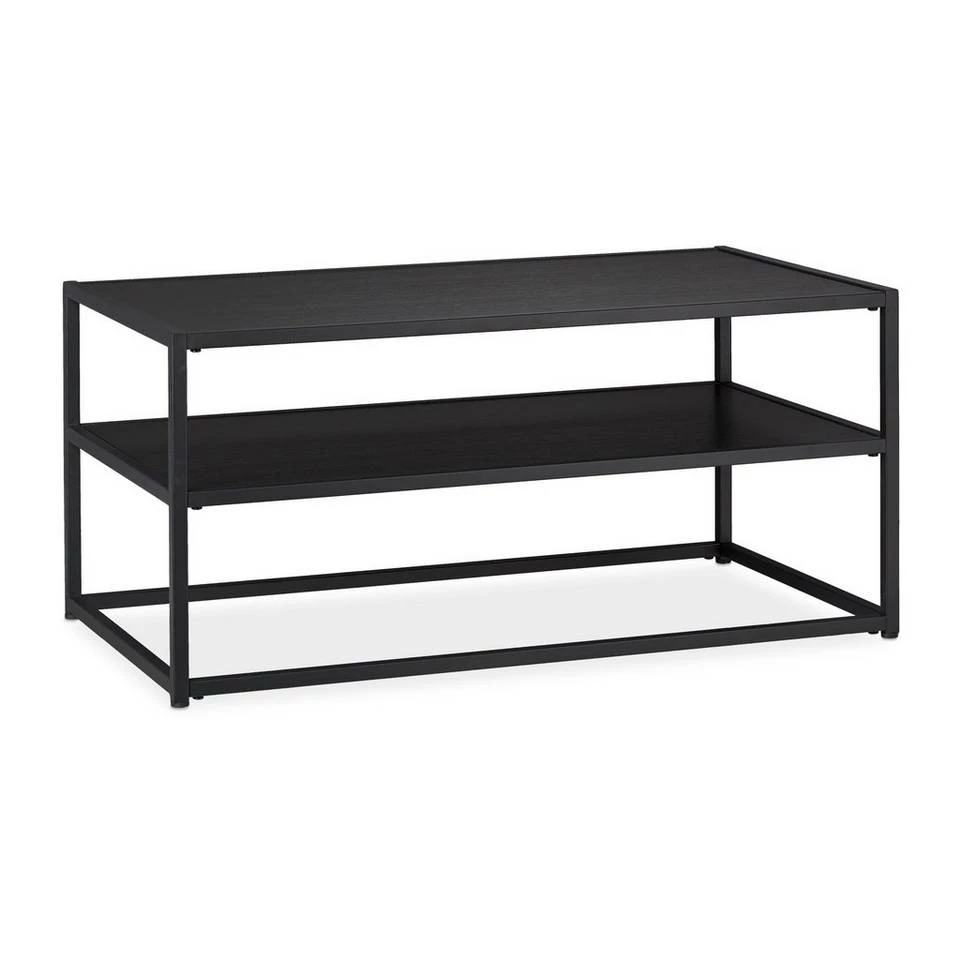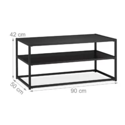 Schlichter Wohnzimmertisch mit Ablage Für einen gemütlichen Fernsehabend benötigen Sie Snacks und Getränke, welche Sie bequem auf diesen eleganten Kaffeetisch abstellen können. Zudem bietet der niedrige Tisch mit 2 Ebenen ausreichend Stauraum für die Fernbedienung sowie Bücher, Zeitschriften und Naschereien. Wenn Sie es sich auf der Couch gemütlich machen, sind Sie somit bestens mit allen wichtigen Dingen versorgt. Das dunkle Schwarz des Loungetisches fügt sich dabei nahtlos in einen modernen Einrichtungsstil ein.