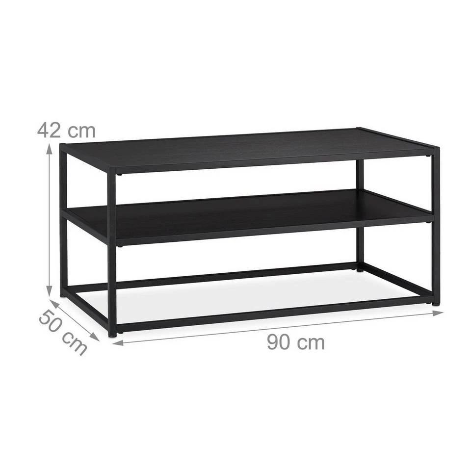 - Modern: Niedriger Couchtisch mit schwarzen Metallbeinen – Ablage sowie Tischplatte aus MDF in Schwarz
