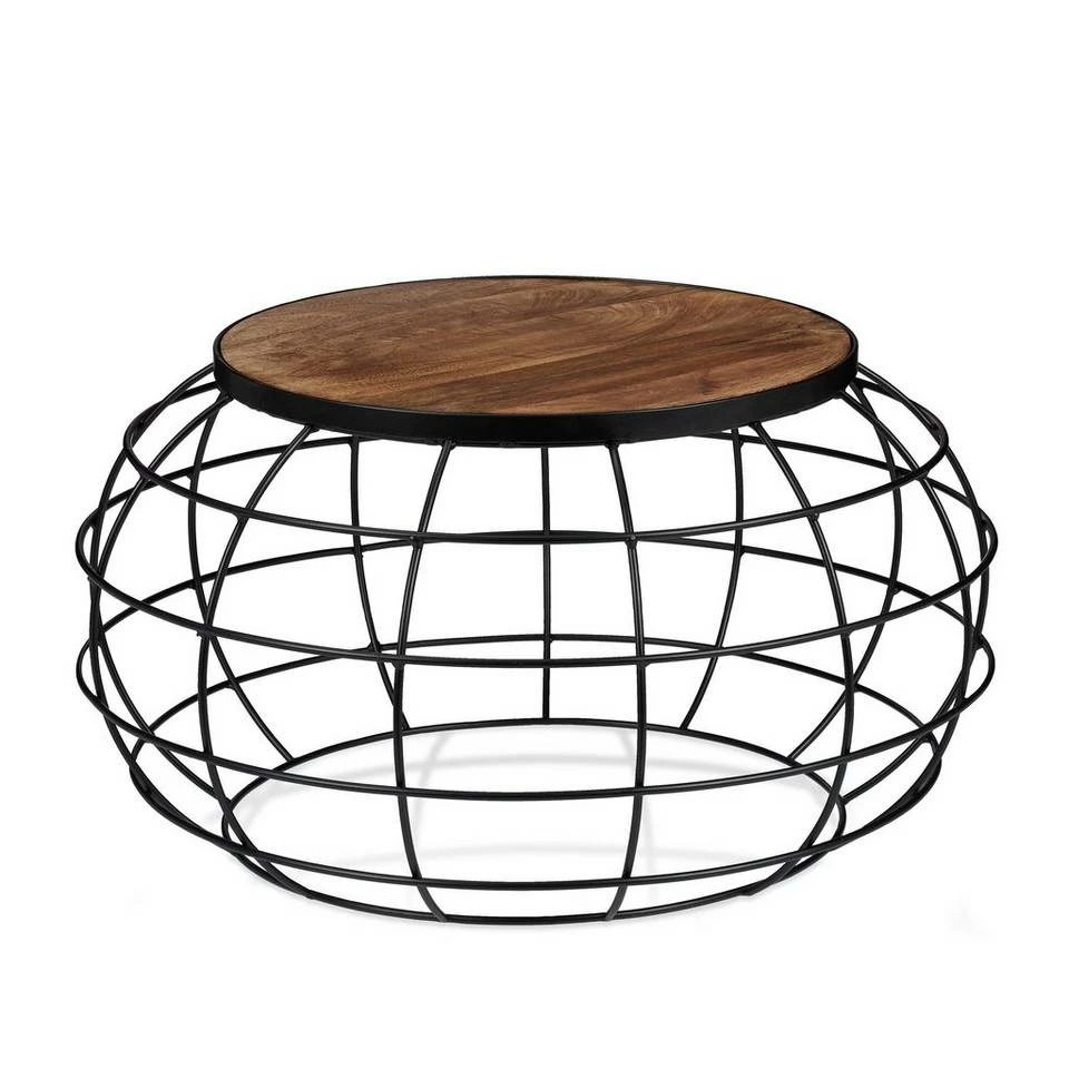 - Details: Wohnzimmertisch mit Tischplatte aus echtem Mangoholz und Eisenkorb – HxD: ca. 36 x 67 cm