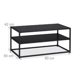 - Groß: Flacher Sofatisch mit großer Ablage – Stauraum auf 2 Ebenen – H x B x T: ca. 42 x 90 x 50 cm