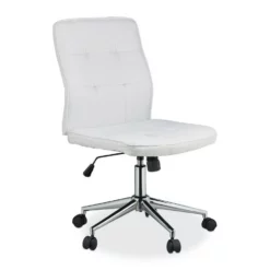 Schicker Drehstuhl ohne Armlehnen Mit dem höhenverstellbaren Bürostuhl in elegantem Design holen Sie sich einen echten Hingucker an Ihren Arbeitsplatz oder in Ihr Zuhause. Doch nicht nur optisch macht der Chefsessel eine gute Figur – dank geschwungener Rückenlehne garantiert der Schreibtischstuhl eine ergonomische Sitzhaltung und beugt somit Rückenleiden an langen Bürotagen vor. Ohne einschränkende Armlehnen genießen Sie optimale Bewegungsfreiheit und sind durch das Fußkreuz mit fünf Laufrollen stets mobil.