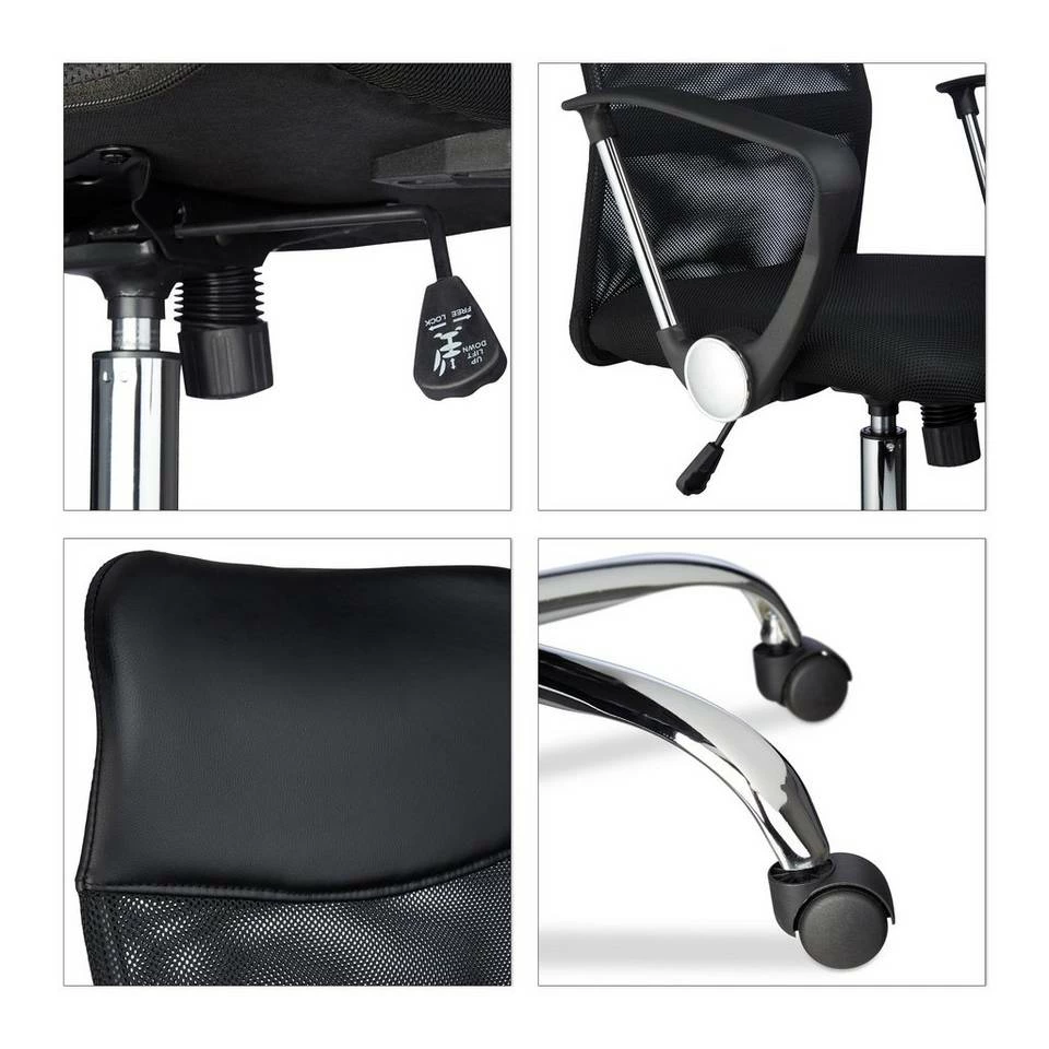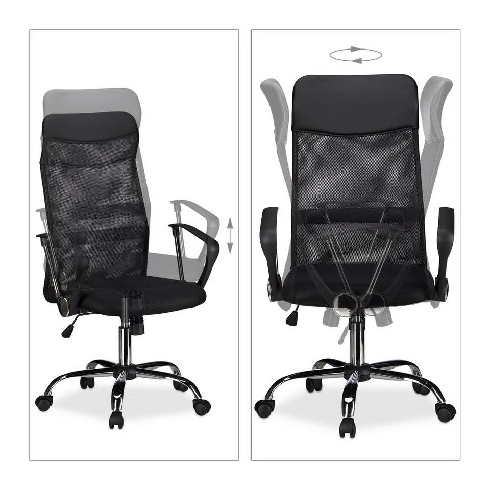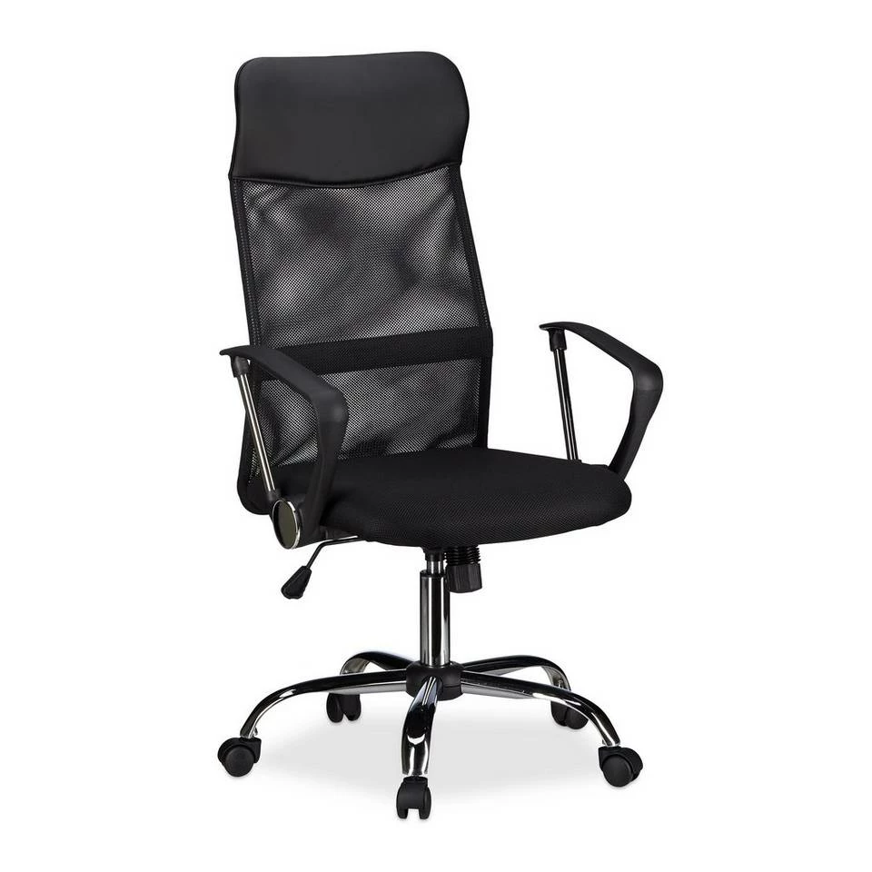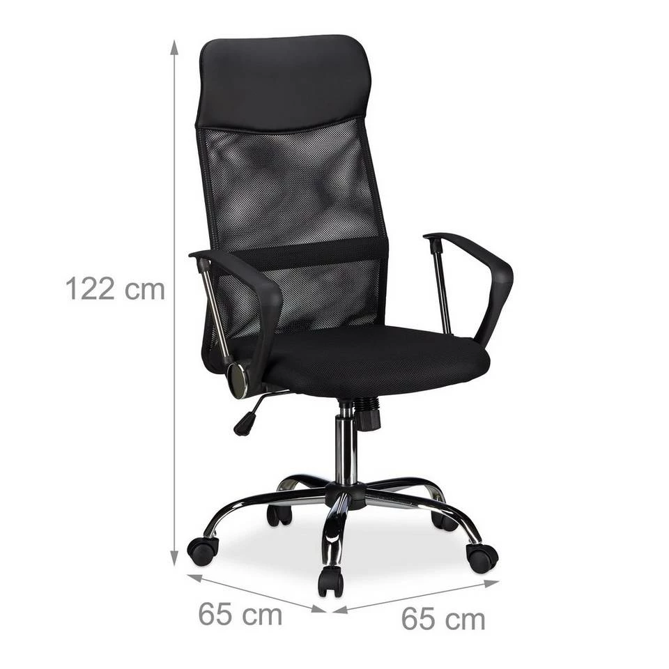 - Drehbar: 360° Drehstuhl mit Chrom-Fußkreuz – Schwarzer Bürosessel H x B x T: ca. 122 x 65 x 65 cm