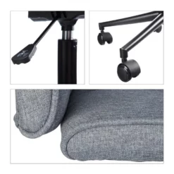 Ergonomischer Schreibtischstuhl Beugen Sie Rücken- und Nackenschmerzen bei langem Sitzen am Schreibtisch mit diesem ergonomischen Drehstuhl vor. Die Rückenlehne passt sich dank Lordosenstütze natürlich an Ihre Haltung an. Die gepolsterte Sitzfläche ist auch bei langem Sitzen am Schreibtisch im Büro oder Arbeitszimmer noch bequem. Verstellen Sie die Höhe des Arbeitssessels ganz einfach stufenlos durch den seitlichen Hebel. Das moderne Design aus Stoff und Metall ist zudem auch optisch ein Blickfang.