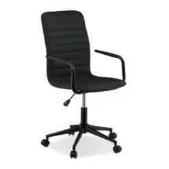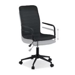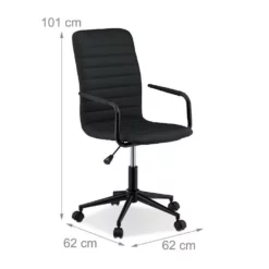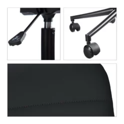Klassischer Bürostuhl aus Kunstleder Wenn Sie häufig und lange am Schreibtisch sitzen, ist ein bequemer und ergonomischer Stuhl unerlässlich. Die Rückenlehne des Schreibtischstuhls passt sich dabei angenehm an Ihren Rücken an. Die Sitzfläche ist dabei weich gepolstert. Dank der seitlichen Lehnen können Sie auch Ihre Arme ablegen. Der Drehstuhl gleitet durch die Rollen mühelos über den Boden. Für optimalen Komfort ist die Sitzhöhe per Hebel einfach stufenlos einstellbar. Das schwarze Kunstleder ist auch optisch ein Hingucker.