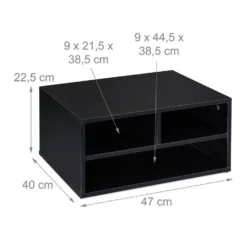 - Innenmaße: Kleine Fächer HxBxT: ca. 9 x 21,5 x 38,5 cm – Großes Fach HxBxT: ca. 9 x 44,5 x 38,5 cm