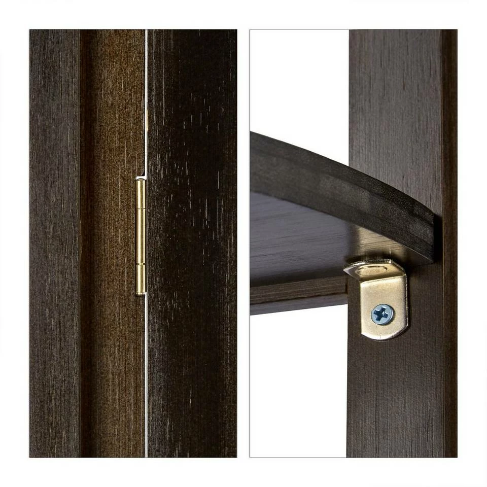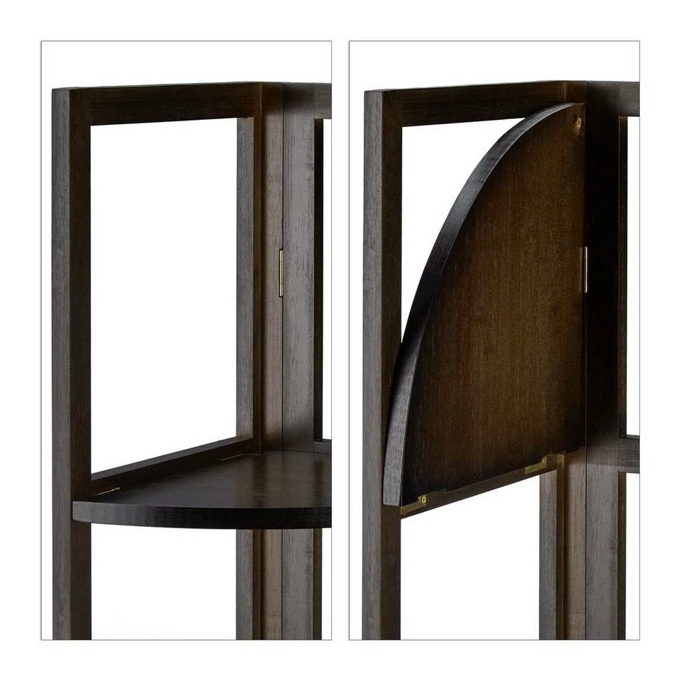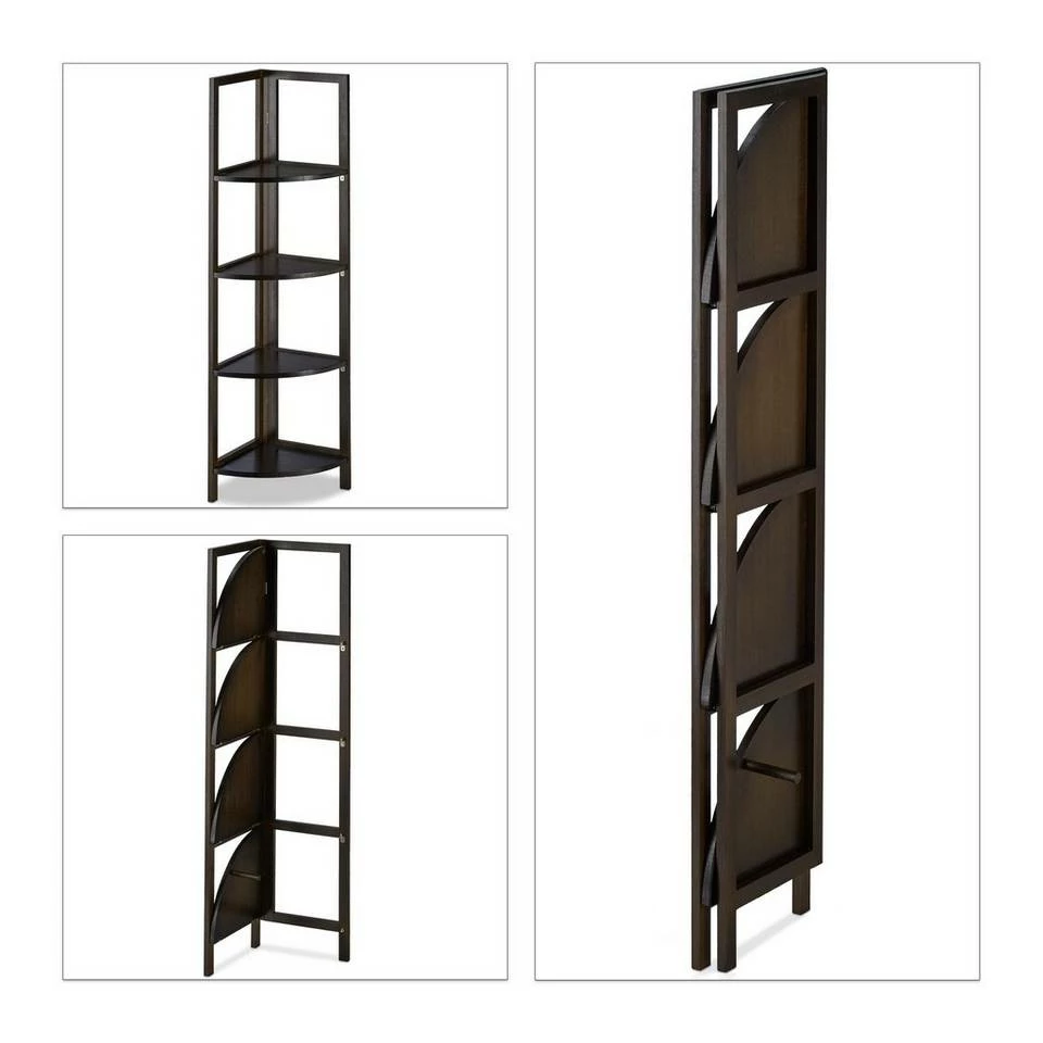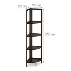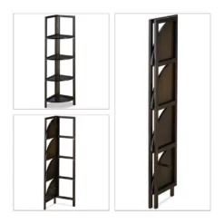 Offenes Nischenregal in dunklem Braun Mit dem Eckregal nutzen Sie den Raum in Zimmerecken und Nischen optimal aus. Dank seiner 4 Ablagen bietet das Nischenregal viel Platz für die verschiedensten Haushaltsgegenstände wie Vasen, Figuren oder Badartikel. Auch optisch setzt das dunkelbraun lackierte Standregal aus Bambus Akzente. Der Aufbau des Stehregals geht schnell von der Hand und benötigt keinerlei Werkzeug. Brauchen Sie das Bambusregal gerade nicht oder wollen es transportieren, klappen Sie es einfach platzsparend zusammen.