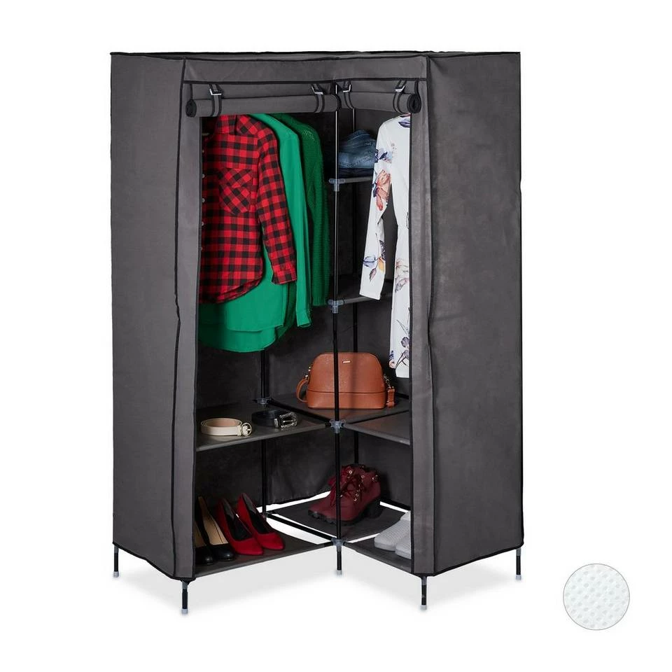- Organizer: Großer Stoffschrank für Zimmerecken mit Bezug und 2 hochrollbaren Türen – In anthrazit