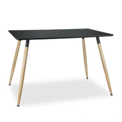 - Rechteckige Tischplatte: Eckige Fläche aus matt lackiertem Holz (MDF) in Schwarz – Höhe: 75 cm, Breite: 120 cm, Tiefe: 80 cm – Tischplattenstärke: 2 cm