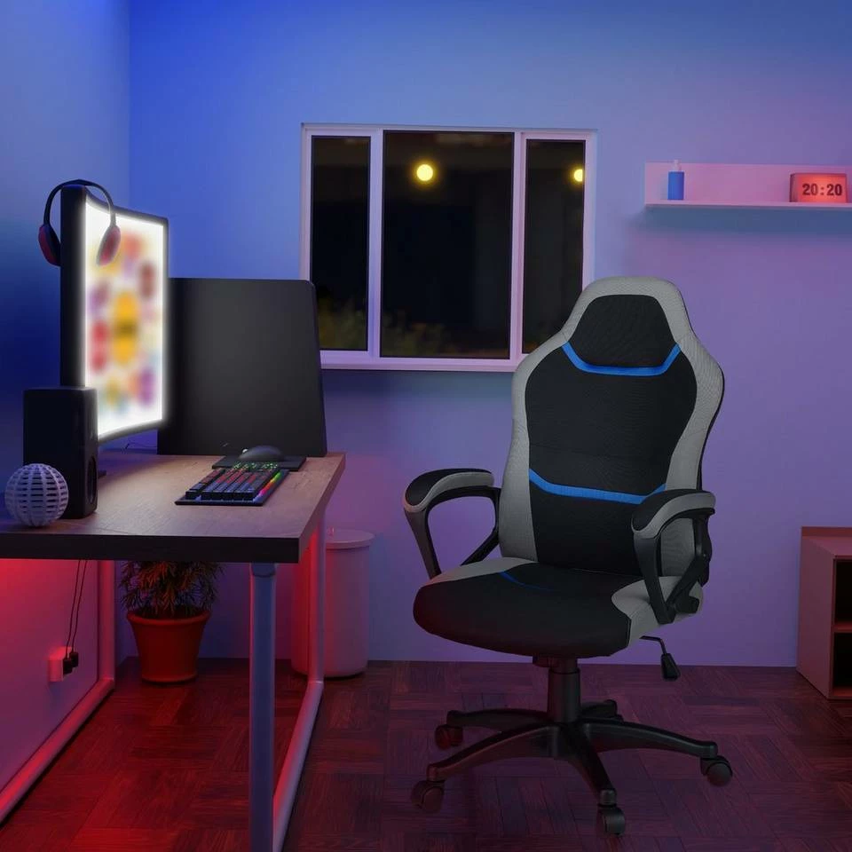 - Racer-Design: Bürostuhl in dynamischer Form und sportlichem Muster – Weicher Bezug in Schwarz-Blau