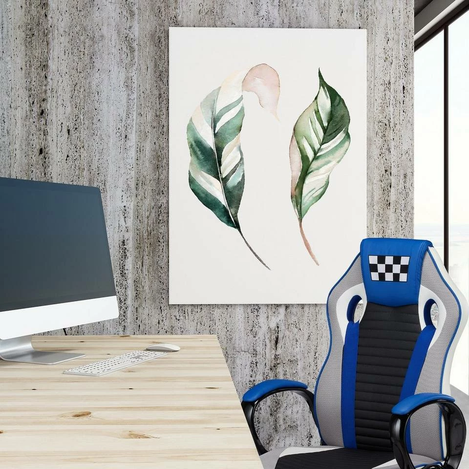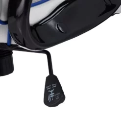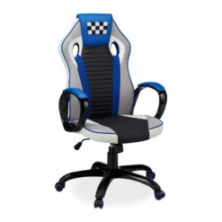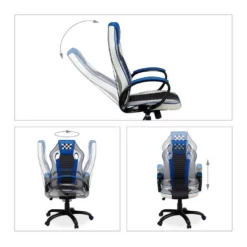 - Racer-Design: Geschwungener Bürostuhl mit sportlichem Muster – Weicher Stoffbezug in Schwarz-Blau