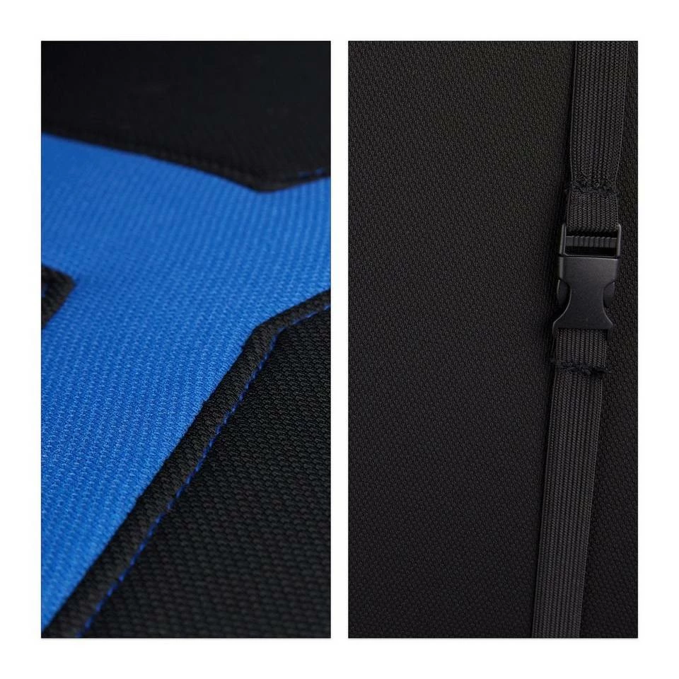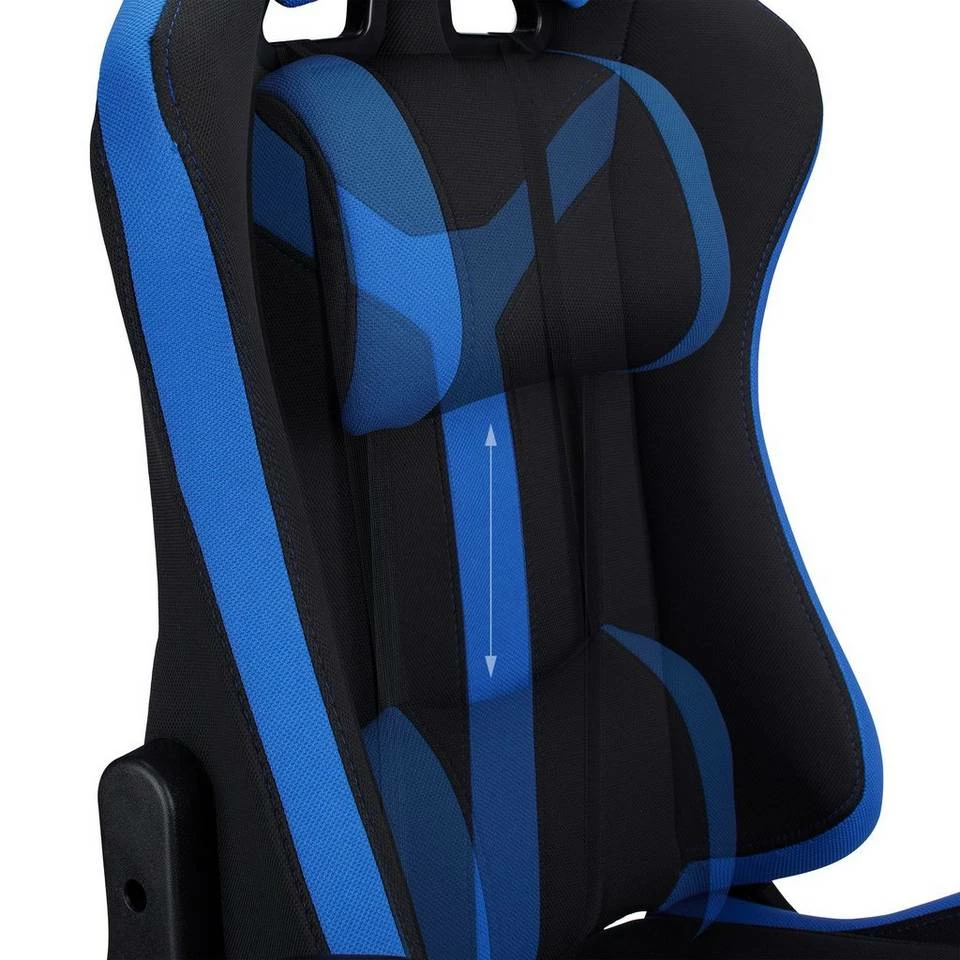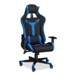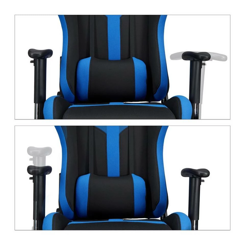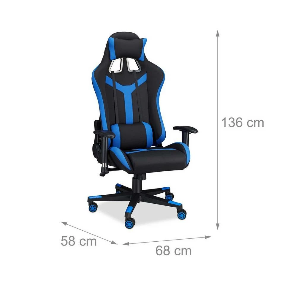 - Racing Design: Dynamischer Bürostuhl mit schwarz-blauem Stoffbezug – PU-Rollen in Felgen-Optik