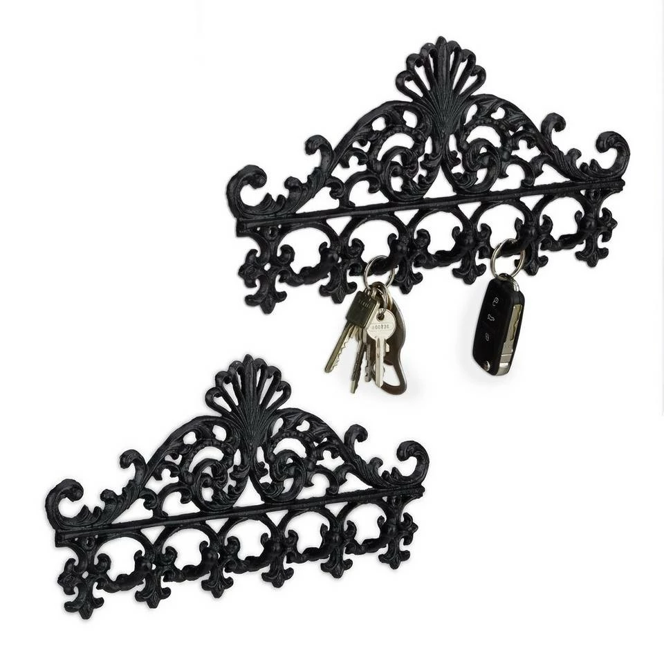 - Set: 2 x schwarze Wandgarderobe im nostalgischen Antik-Stil – Dekorative Verzierung mit Ornamenten