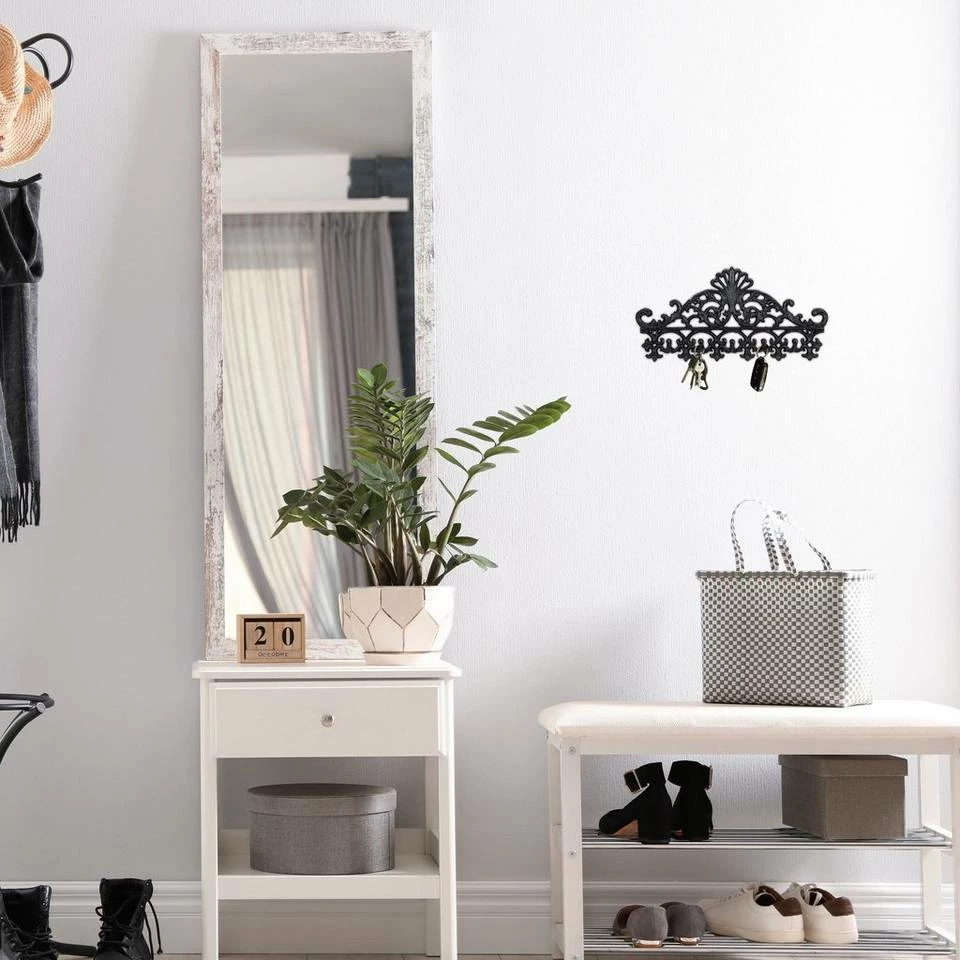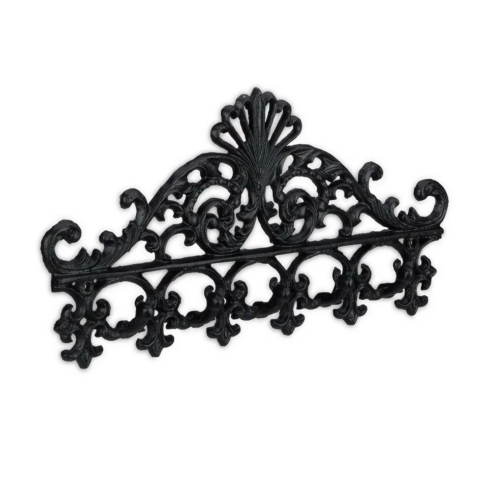 Nostalgische Wandgarderobe mit 5 Haken Mit dieser Wandhakenleiste schaffen Sie im Handumdrehen Stauraum für leichte Jacken, Schals oder Schlüssel. Gleichzeitig verleihen Sie Ihrem Eingangsbereich einen antiken, geradezu barocken Look. Ebenso ist die Hakenleiste für Geschirrtücher in der Küche geeignet. Durch die stilvoll eingearbeiteten Ornamente wird die Kleiderhakenleiste auch einzeln zum originellen Dekoelement.