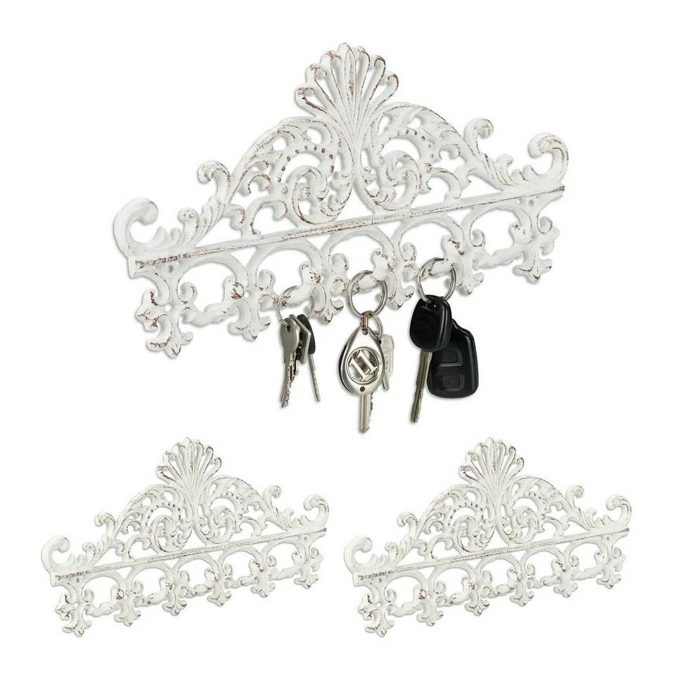 - Set: 3x weiß-braune Wandgarderobe im nostalgischen Antik-Stil – Dekorative Verzierung mit Ornamenten