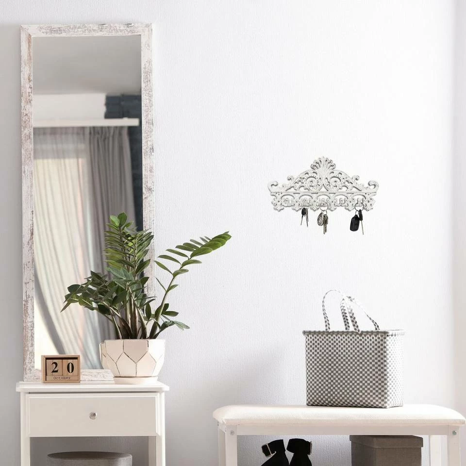 Nostalgische Wandgarderobe mit 5 Haken Mit dieser Wandhakenleiste schaffen Sie im Handumdrehen Stauraum für leichte Jacken, Schals oder Schlüssel. Gleichzeitig verleihen Sie Ihrem Eingangsbereich einen antiken, geradezu barocken Look. Ebenso ist die Hakenleiste für Geschirrtücher in der Küche geeignet. Durch die stilvoll eingearbeiteten Ornamente wird die Kleiderhakenleiste auch einzeln zum originellen Dekoelement.
