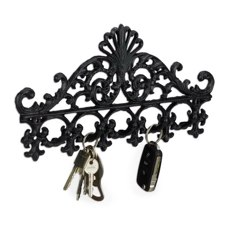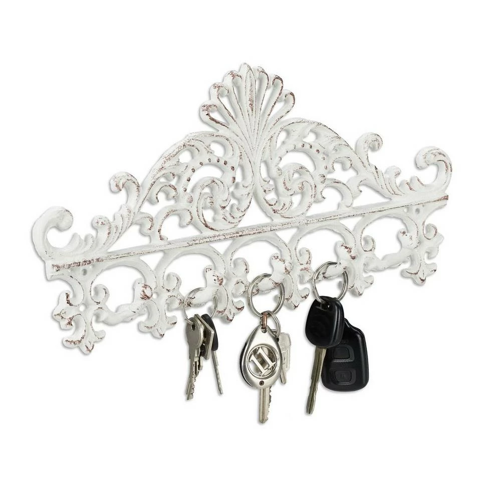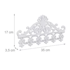 Nostalgische Wandgarderobe mit 5 Haken Mit dieser Wandhakenleiste schaffen Sie im Handumdrehen Stauraum für leichte Jacken, Schals oder Schlüssel. Gleichzeitig verleihen Sie Ihrem Eingangsbereich einen antiken, geradezu barocken Look. Ebenso ist die Hakenleiste für Geschirrtücher in der Küche geeignet. Durch die stilvoll eingearbeiteten Ornamente wird die Kleiderhakenleiste auch einzeln zum originellen Dekoelement. Holen Sie sich Ihre Garderobenhakenleiste farblich passend zu Ihrer Einrichtung.