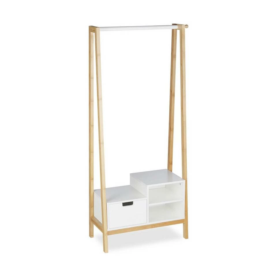 - Details: Stabile Garderobe aus natürlichem Bambus und weißem MDF – HxBxT: ca. 139,5 x 64,5 x 31 cm